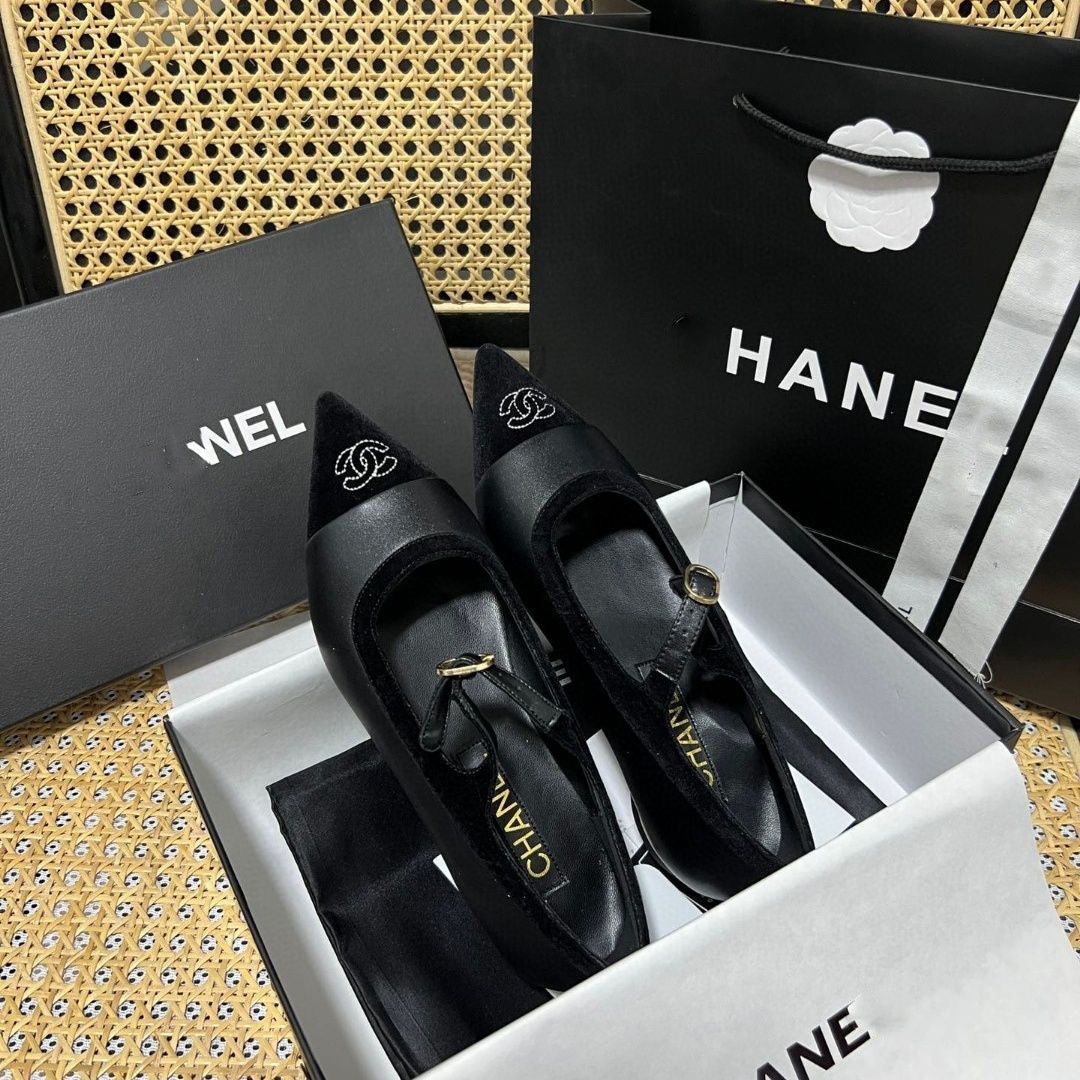 Black Leather C Logo 8CM Women's Fashion Shoes XC052023110205