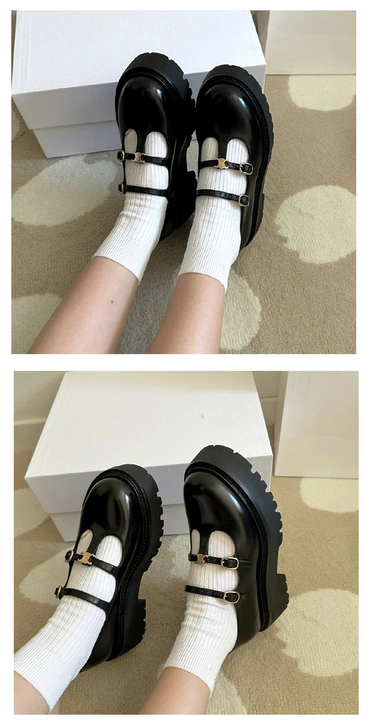 High-Heeled Platform Loafers All-Match Genuine Leather Mary Jane Shoes 1024041509