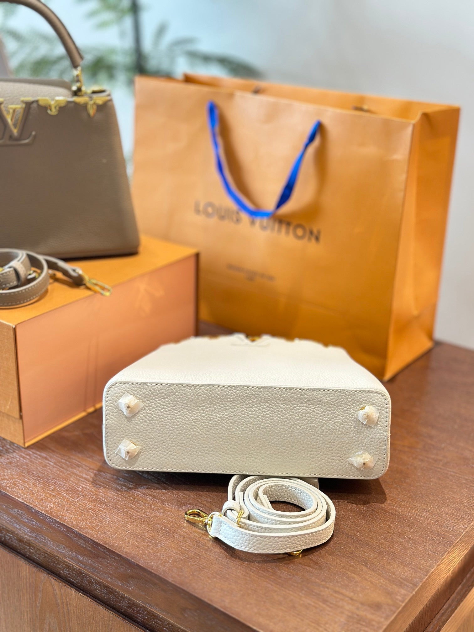 New Capucines Metallic Flower Trim Handbag 1824042604