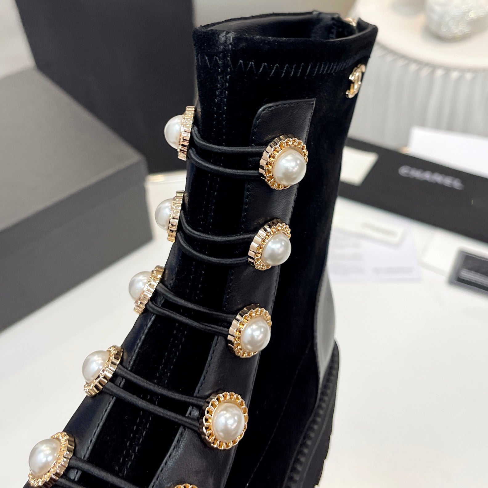Pearl metal buckle boots XC1823100501